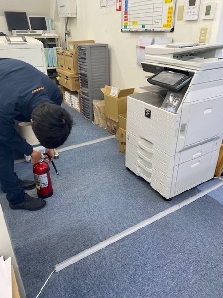 本社ではコピー機の電源から火災が発生したことを想定し、役割を決め避難開始!