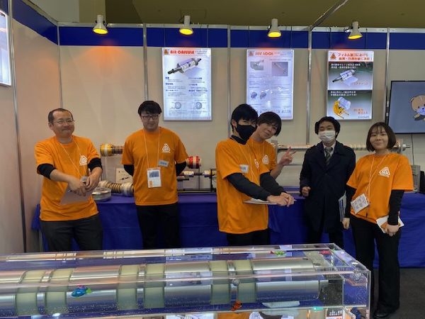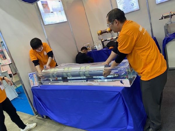 展示品は軽さをアピールする為に主軸CFRPの6inエアカプセルを水に浮かべ、ブース前を通るお客様の足を止めることに成功しました。(笑)